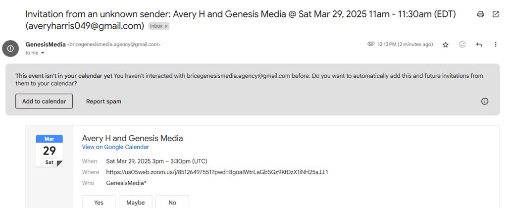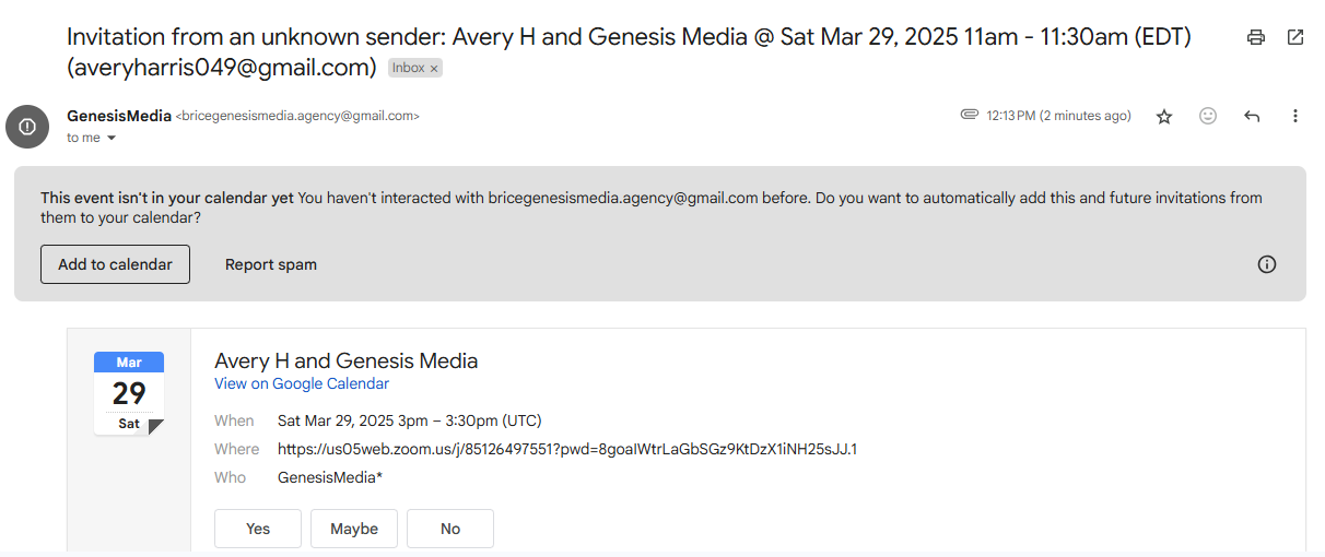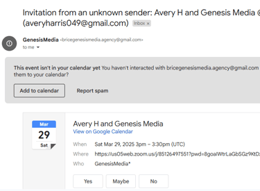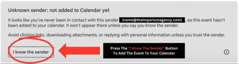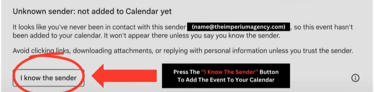 IMPORTANT: The "invitation from unknown sender" email may give the option click 'I know the sender' instead of 'Add to calendar'. If this is the case please click 'I know the sender' button.